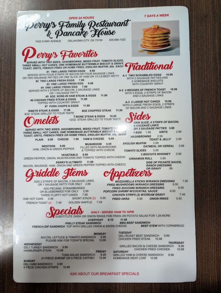 Perry's restaurant - Oklahoma City Menu